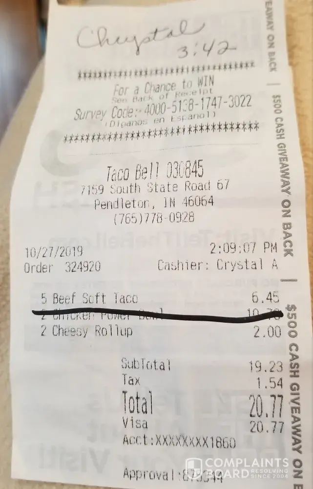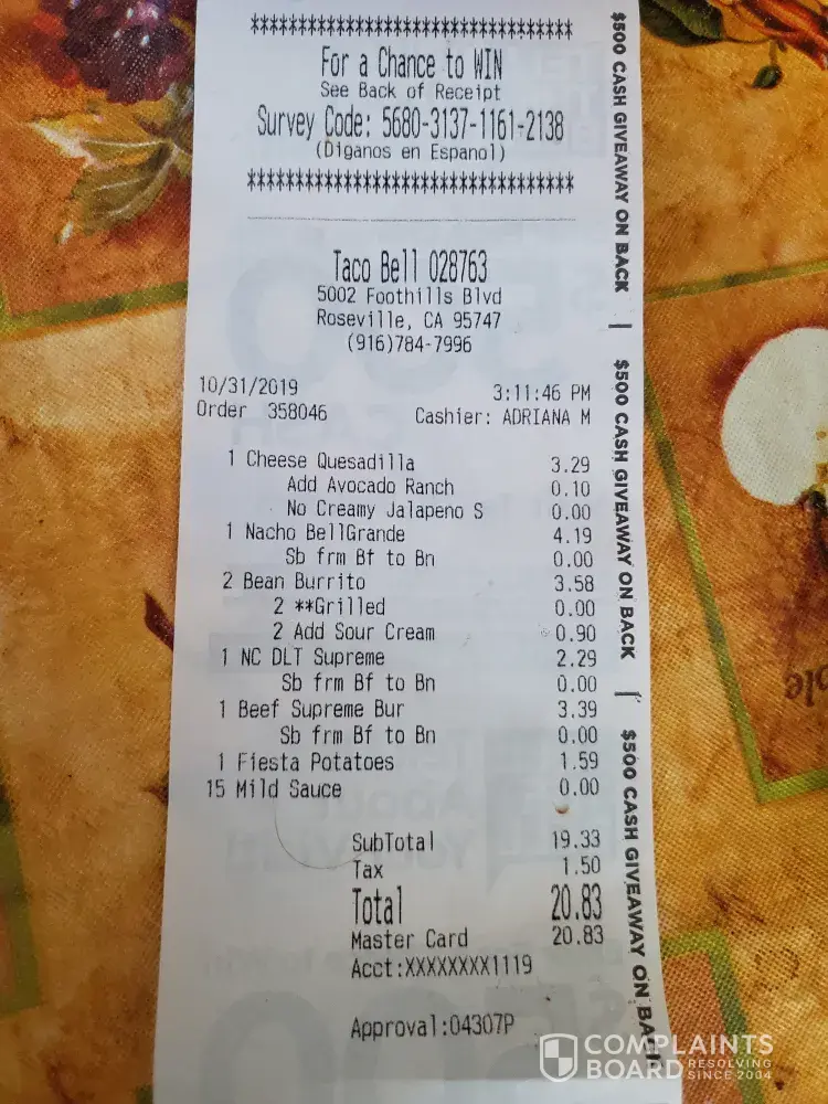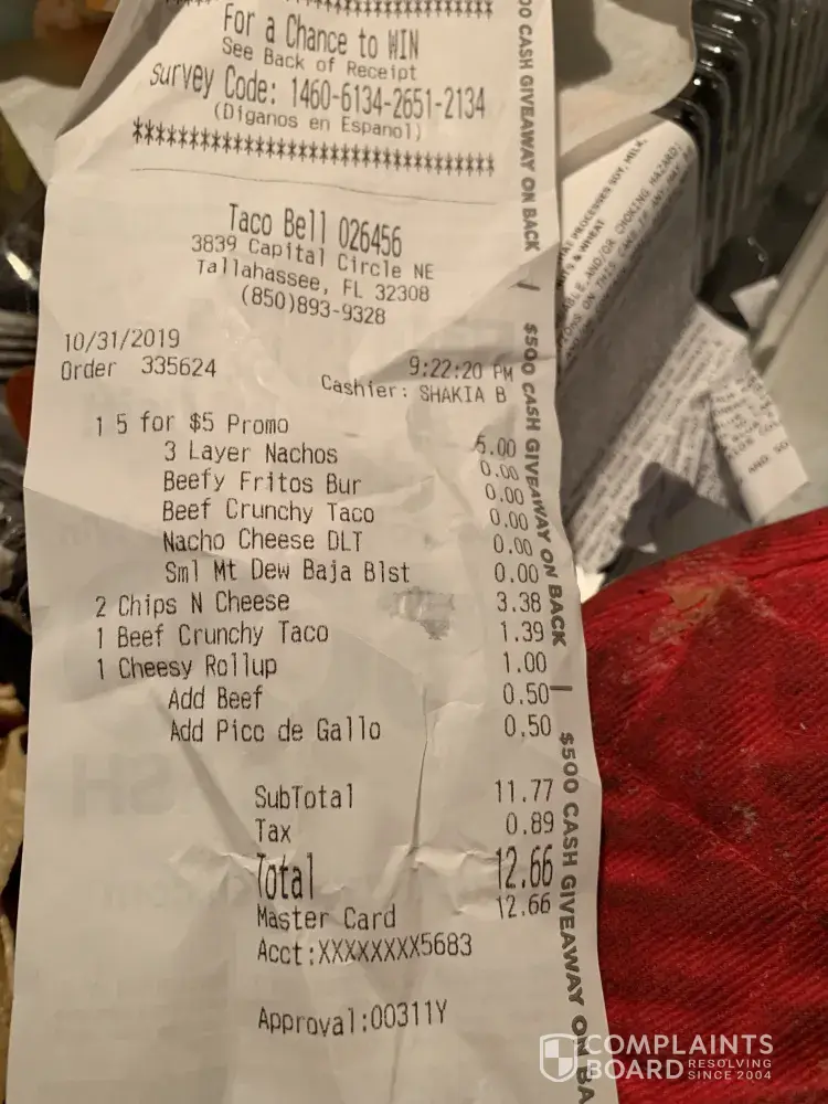 Read full complaintTaco Bell not honoring my religious beliefs.