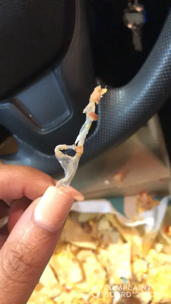 I went to Taco Bell and ordered nachos. About half way through, I pulled plastic out my mouth and I started looking through the box, and found more plastic. I then returned it to Taco Bell and the woman Veronica at the drive through called me a liar. When I pulled up and showed them, no apology but laughter. I am six months pregnant, who knows what would've happened had I injested it.