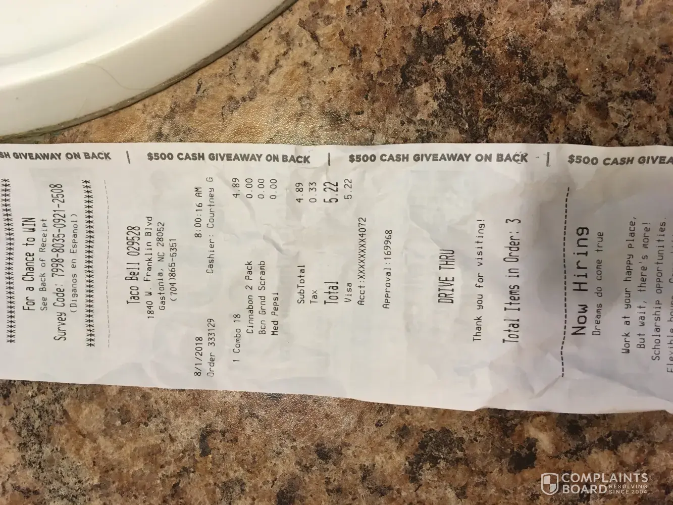 On August 1 2018 at around 745am I went to drive through of Taco Bell on W. Franklin Blvd Gastonia no. No one answered drive through speaker so I pulled up to window no one answered window all lights were off only three cars in parking lot which were employees. I pull around and call three times No answer until third time and o asked what time y'all open which I knew it was 7am and the girl sounded startled and said 7am. So I go back through and they go to take my order my drink of choice was tea but I was told they hadn't made the tea yet her exact words were the nozzles are dirty and I haven't made it yet so I choose a soda instead. Pull up to window she unlocks window she Informs me it'd be a second to get her cash register draw ready then she takes my payment and tells me to pull around and wait for food to be cooked. So I waited about ten minutes then she unlocks doors to restaurant and she brought food out. So basically I sincerely do believe your employees where still closed and not intending to open until 8or later. It was one excuse after another. I think she knew she got caught. These employees names from what I could read on badges and receipt are Shayla and Courtney G. My name is Casey Mantooth [protected]
