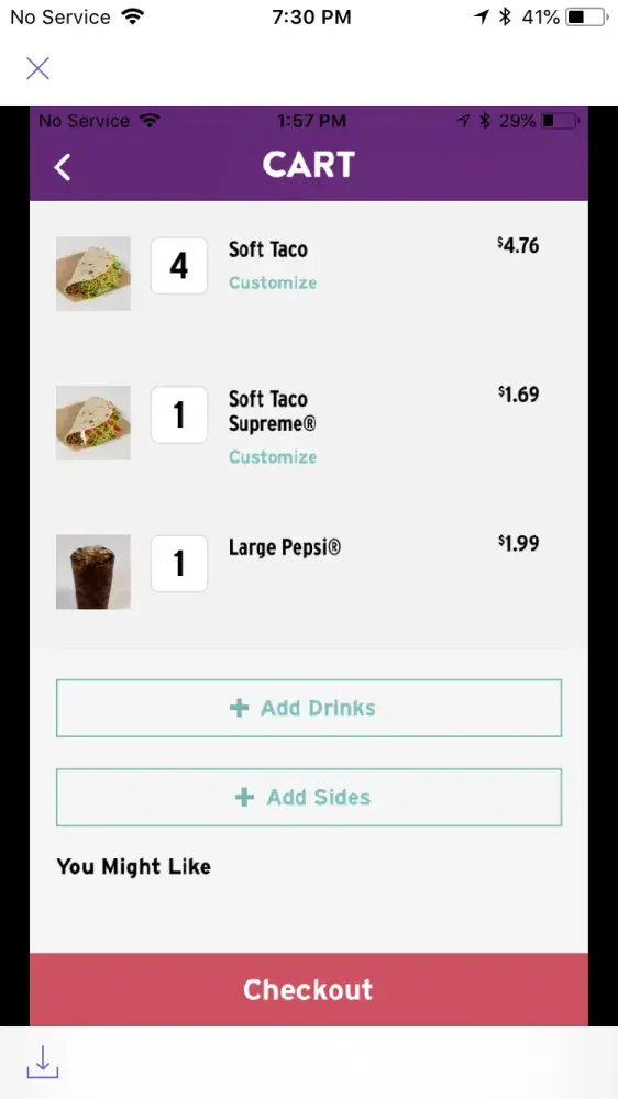 Firstly, your board says you have two things that apparently you were out of. One, was the naked chicken Chalupa, the other was a combo meal. It's still on the board, and I was not given any other option, other than recommending the nachos. That was super helpful, not. The employee forgot I was there, and even admitted to it, his name was Justin. He didn't offer anything in exchange for everything going wrong in this trip, and the food was cold. It look like it was premade and was sitting there. The sour cream tasted like it was about to expire, there was something just wrong about it. The cheese from the tacos was all over the bottom of the bag. Oh, and when I mention that he should probably change the sign, he said that they were planning on doing it tomorrow. Apparently it's not important enough to do it now. Also, I had gotten a few cheesy roll ups, and there was something in one of them. It was very pale, and squishy, it may have been a tomato. And I hate tomatoes. I was not able to finish that, and that's part of my dinner. Also, there was barely any cheese in the roll ups, way less than there usually is. He also tried giving a drink to me, which wasn't even mine. And he wouldn't of even realized if I didn't say it wasn't mine. This is an even the first time that the board has been wrong, you should really keep an eye on that. You're missing forming your loyal customers, Also, I had gotten a few cheesy roll ups, and there was something in one of them. It was very pale, and squishy, it may have been a tomato. And I hate tomatoes. I was not able to finish that, and that's part of my dinner. He also tried giving a drink to me, which wasn't even mine. And he wouldn't of even realized if I didn't say it wasn't mine. This is an even the first time that the board has been wrong, you should really keep an eye on that. You're missing forming your loyal customers, And all of your customers can easily go to McKnight instead. Don't forget that. I'm sure that the McKnight location doesn't have the naked chicken Chalupa sign still up, if they don't have it anymore, as well as the combo deals, which he didn't even say was going to change. Just that it was going to be left up to misinform your customers.