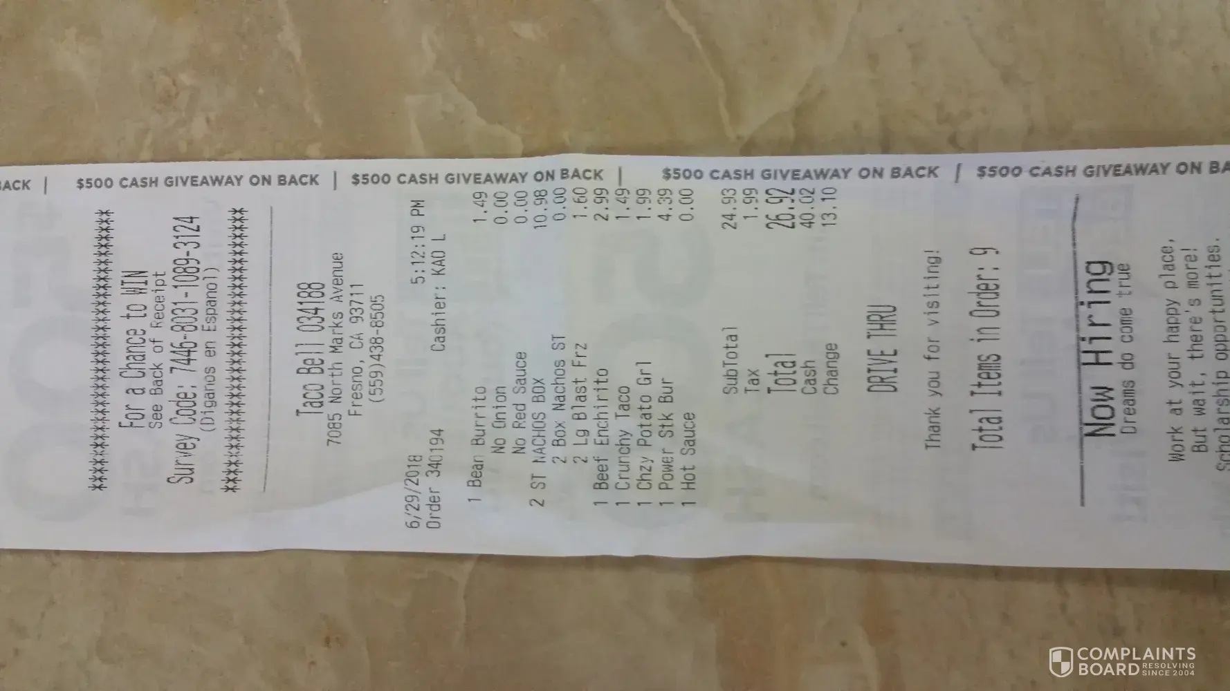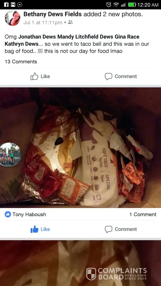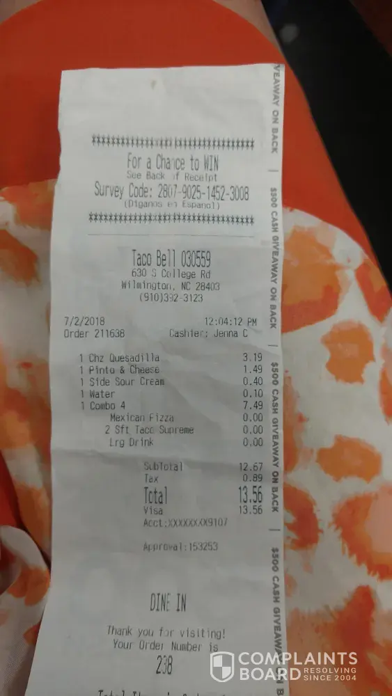Are you serious ripe den? How is what I said silly? Tell me what complaints are legit? (second thought don't tell me cause obviously you do not know and I don't care to hear another one of your responses) If you want to get all technical, maybe use spell check. Or not comment on others complaints saying they are silly or that if I can't afford it, to order online. Why do you feel the need to put others down saying they can't afford it, and yes that is putting someone down. I already said I could afford it, but why should I pay for something that should 100% not be the same price as a chicken w/cheese quesadilla than just a cheese quesadilla (where the online Taco Bell website has it cheaper), can you tell me how that makes sense? The richest people in America if you do any research are the most frugal. (http://time.com/money/4861261/billionaires-spending-habits-frugal/) I am not rich but I am frugal and I don't want to feel I am getting ripped off. There was a story in the news yesterday of a man suing McDonald's because he went to the trouble to order every item on one of the "meal deals" a-la-carte to find out it is cheaper to do so than to order it on their meal deals. Can you not see the justification to do something on principal? Your comments to me are unwarranted and unneeded. I would appreciate you letting someone have their own right to make whatever comment they choose fit as long as it is non offensive. I still don't get why on a COMPLAINT site you even felt the need to write, and write and write again.