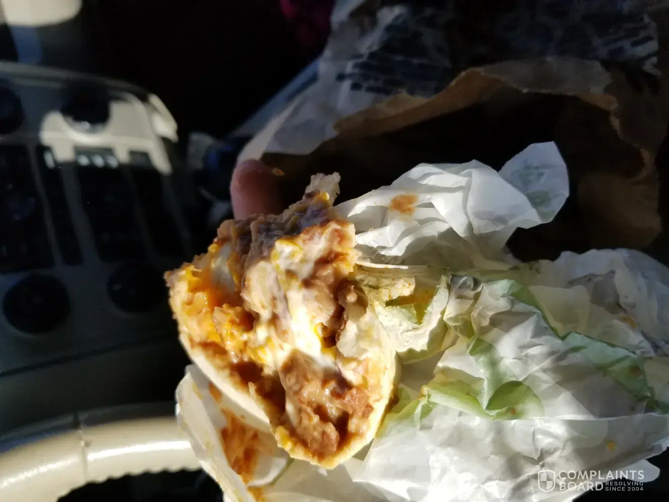 First of all I bought the big box with the chalupa 5 layer burrito taco and twists shown on screen I ended up with chalupa that was stale and no taco or twists the 5 layer burrito was beans beans and more damn beans..we ordered extra meat what did we get half a scoop of meat period it didn't even cover his nacho Bell Grande and the taco that came with it didn't come with it.. Oh we asked for mild and fire we got hot and Diablo.. What a great resturant never will I ever ear there again $15 spent and wasted