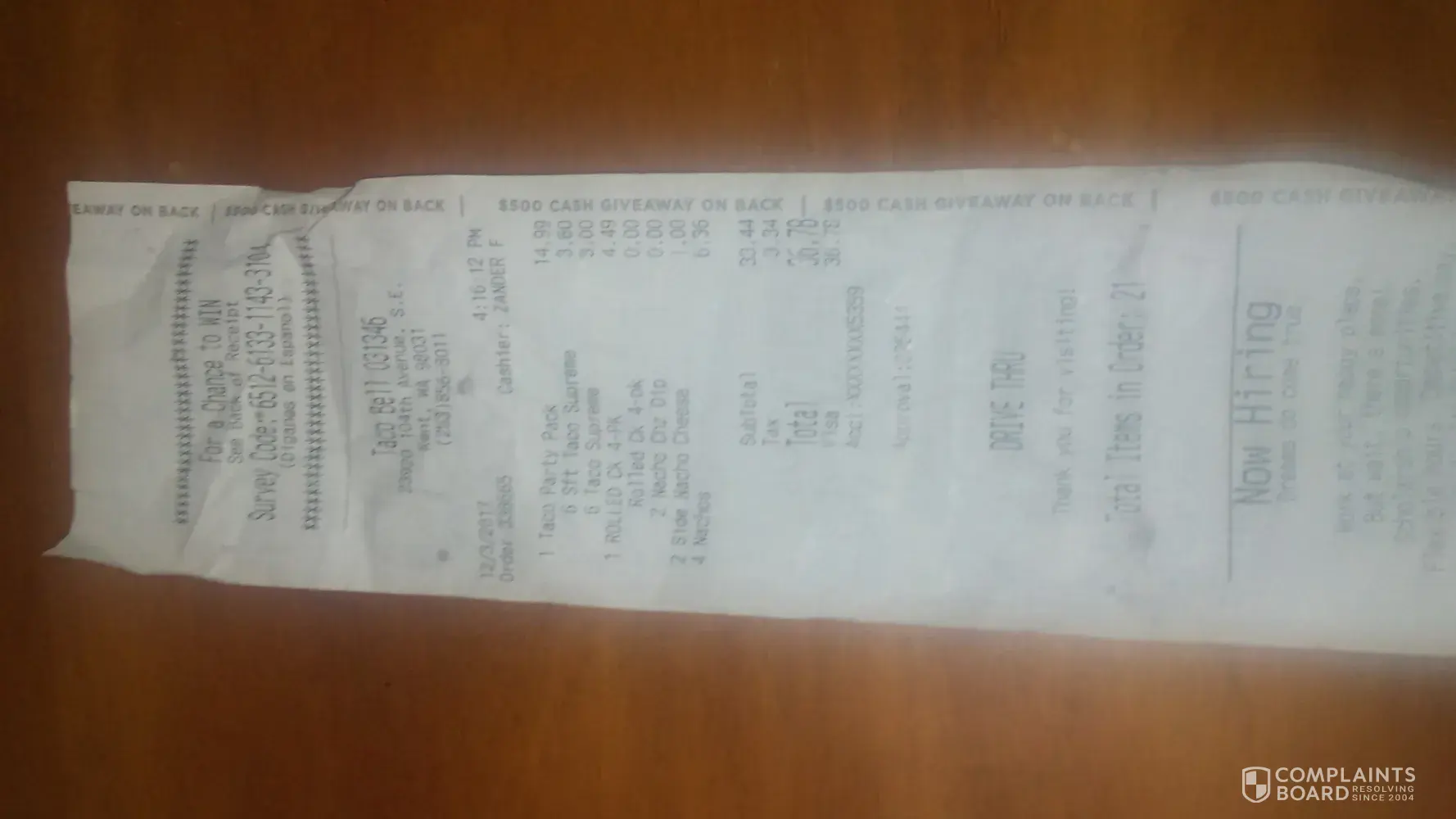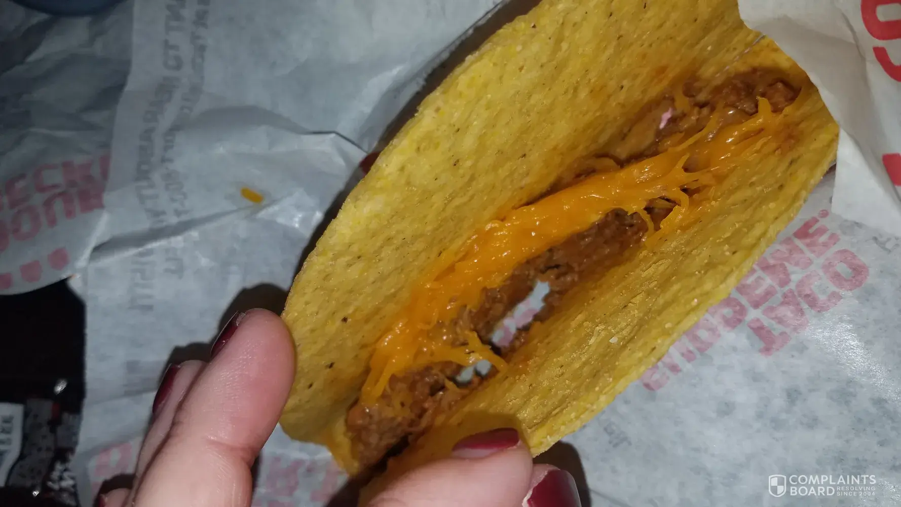 I visit Taco Bell locations pretty regularly (both at home and away at college) so this is a common request I make of the employees at Taco Bell. As shown in the photos I have submitted, I ordered no tomatoes and yet, when I began eating my food there were plenty of tomatoes on it. I assumed this was a simple request because of how accommodating the employees typically are when I ask this of them. Yet this is not the first time this has happened. I try not to be the person who complains very often but I felt like with such a simple request not being met, it should be called to attention. I visit this location frequently so I would like to be reimbursed for this crunch wrap (since the complaint form asks that you come up with a solution). Hopefully the employees can be spoken to and reminded to be careful of what ingredients go into each item based on what's requested. Thank you for your time.