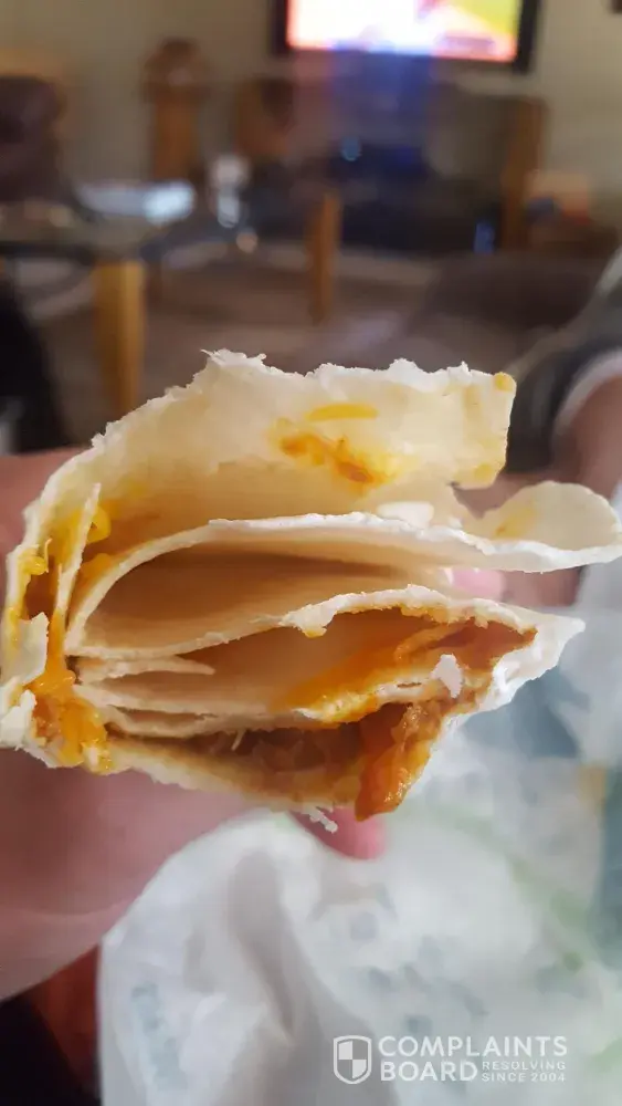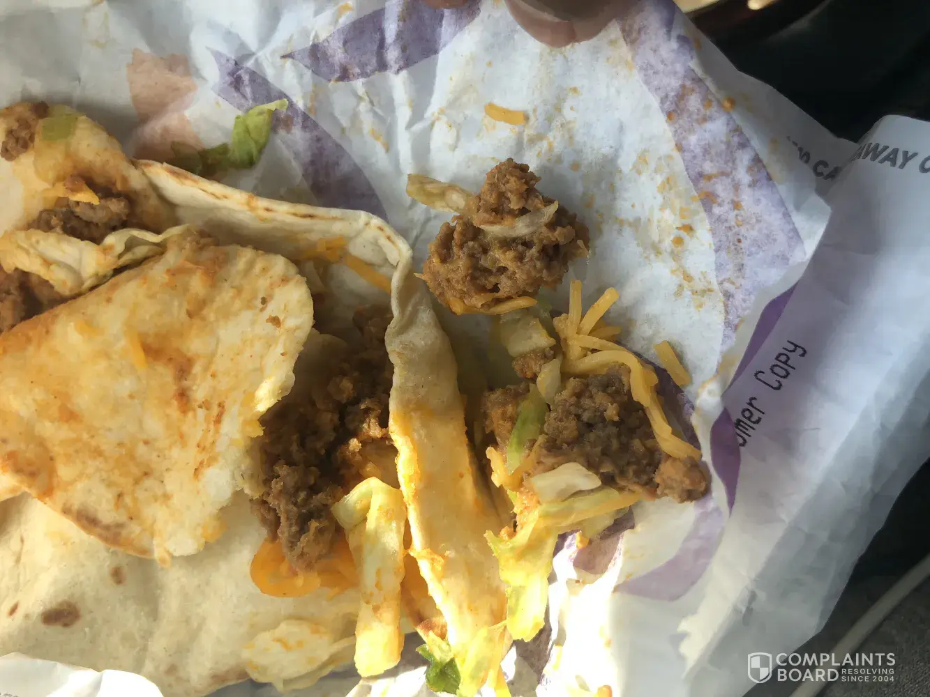 I bought a Crunchwrap supreme I could smell it was burnt when I get home it was. This is not the only time they have [censored]ed up my food and I'm sick of it