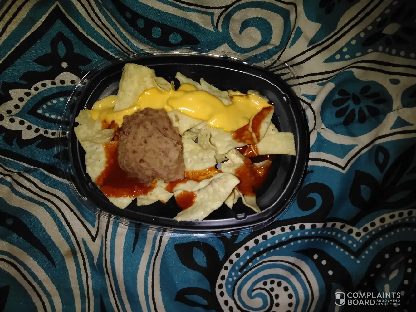 I bought a XML grilled stuff steak burrito meal and they gave me chicken instead of steak and there was maybe 3 pieces of chicken in it on top of it already being the wrong meat and I ordered a triple layer nacho and they put one drop of beans in the top corner and literally one line of cheese and red sauce and it didn't even cover 14 of the chips