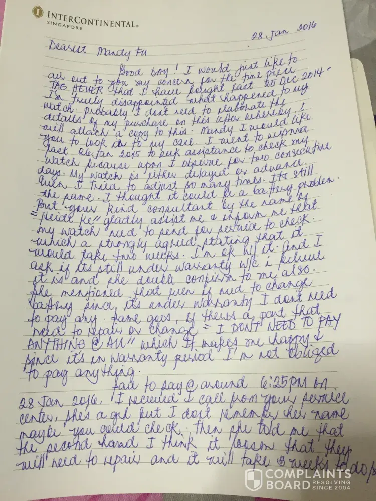 I had the same issue. Now I bought a watch and works perfect, price of new watch is $49.99.