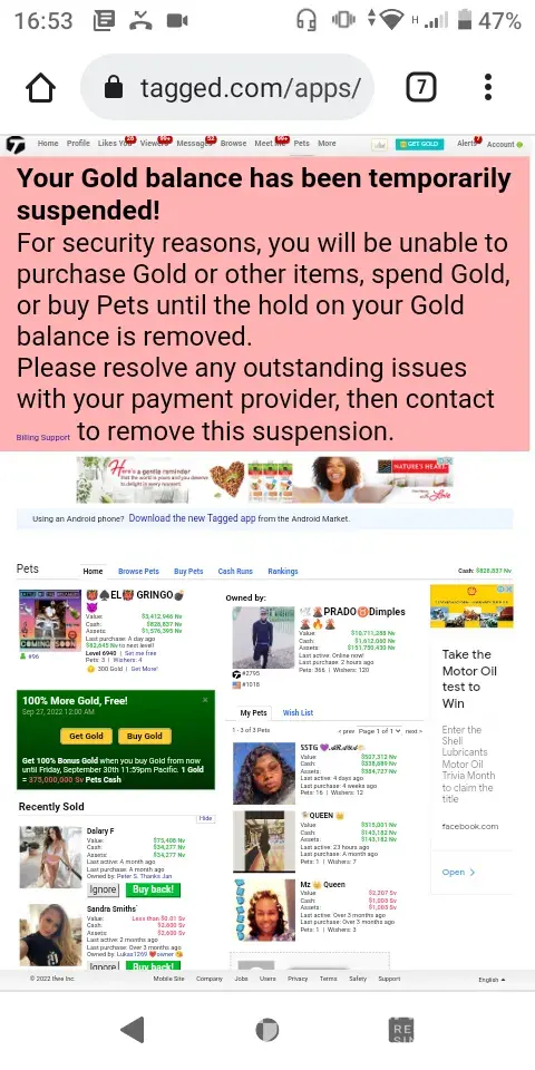 On Tagged at least 6 times,and ,without warning, my account as suspended or cancelled, In fact, Tagged never gave me a clear reason. When i open a new profile, I get barraged by profiles with nude pictures, lewd conversation, I report, block ,and those same exact profiles change locations. I reported that plenty of times and nothing stopped. I had to write Tagged once about a woman who pretended to want to be friends. Then she told me she wanted money for her time, and when i declined, she went on rant, calling me names,etc. I contacted Tagged so they must have did something because I never heard from her again, and blocked her phone number. The main thing is, like last week or so,I woke up to 26 fake profiles, from fake websites, with nude pictures, to offers to f---, to offers for money, and some site that sends multiple picture/profiles from the same exact address. I reported the address several times and they still kept coming. I have seen profiles where the woman clearly states she is having se- for money. I had my settings so that no one from outside the US can contact me,so what they do is post they are from NYC or some other USA city,and then reveal they live elsewhere. I do have several saved Tagged conversations on my computer,so I do have proof. I also have these people who contactm me over and over,after I have blocked them and told therm not to contact me anymore, like 'Envy Badd". I could barely enjoy my experience on tagged because it's littered with fake profiles, scammers,escorts,and those pretending to be another gender.