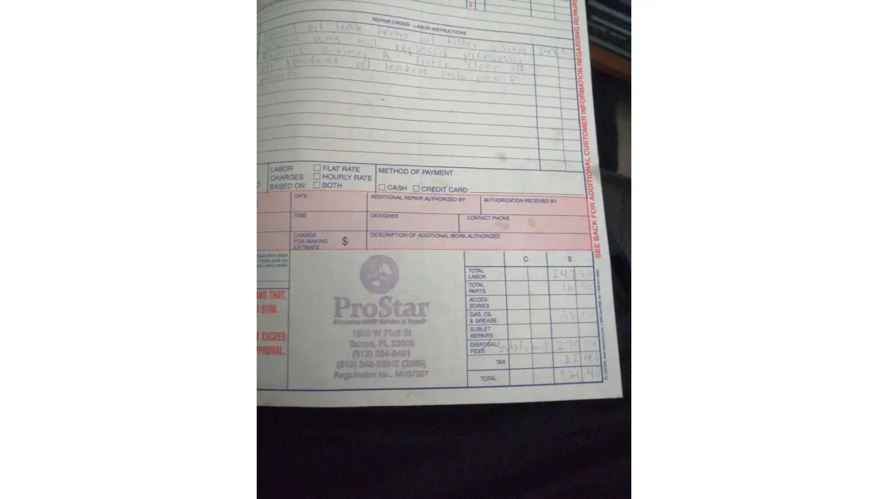 Claimed loss: $321.43 for the replacement of the Oil filter, diagnosis and clean up.