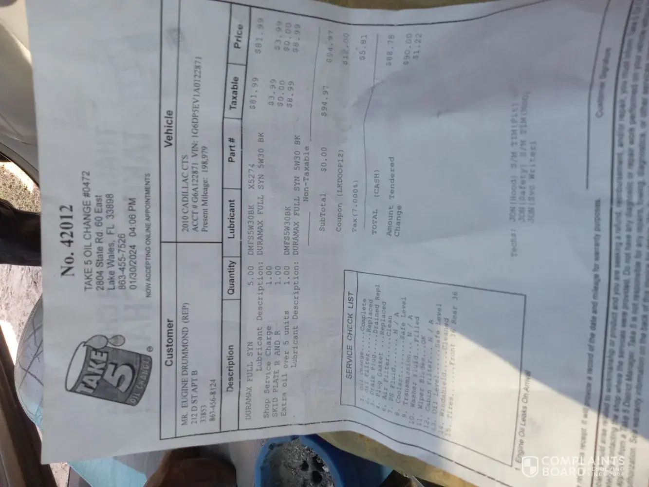 Read full complaintTake 5 Oil Change complaints: history and resolution overview