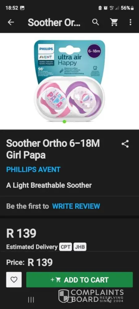 Read full complaintAvent girls dummy 6-18mnths