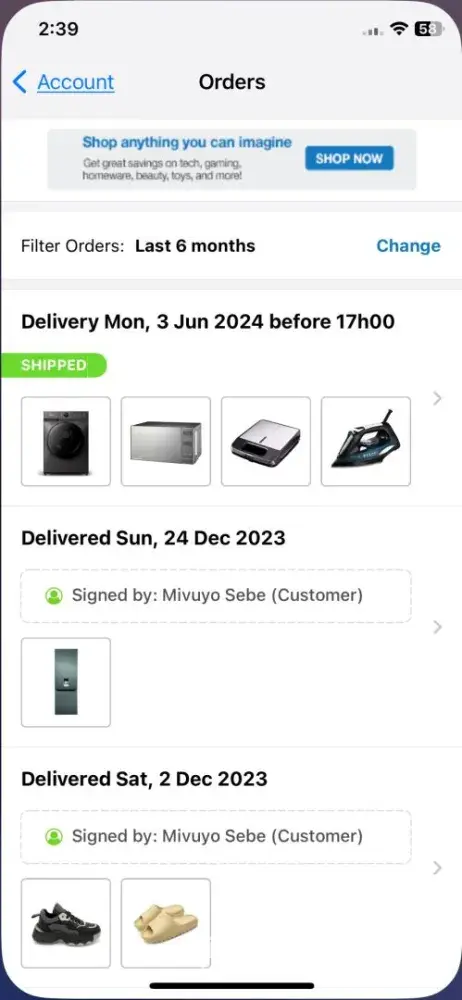 I ordered a iPhone from takealot on the 2023/12/28 and when the delivery guy delivered the item itwas on the 2024/01/02