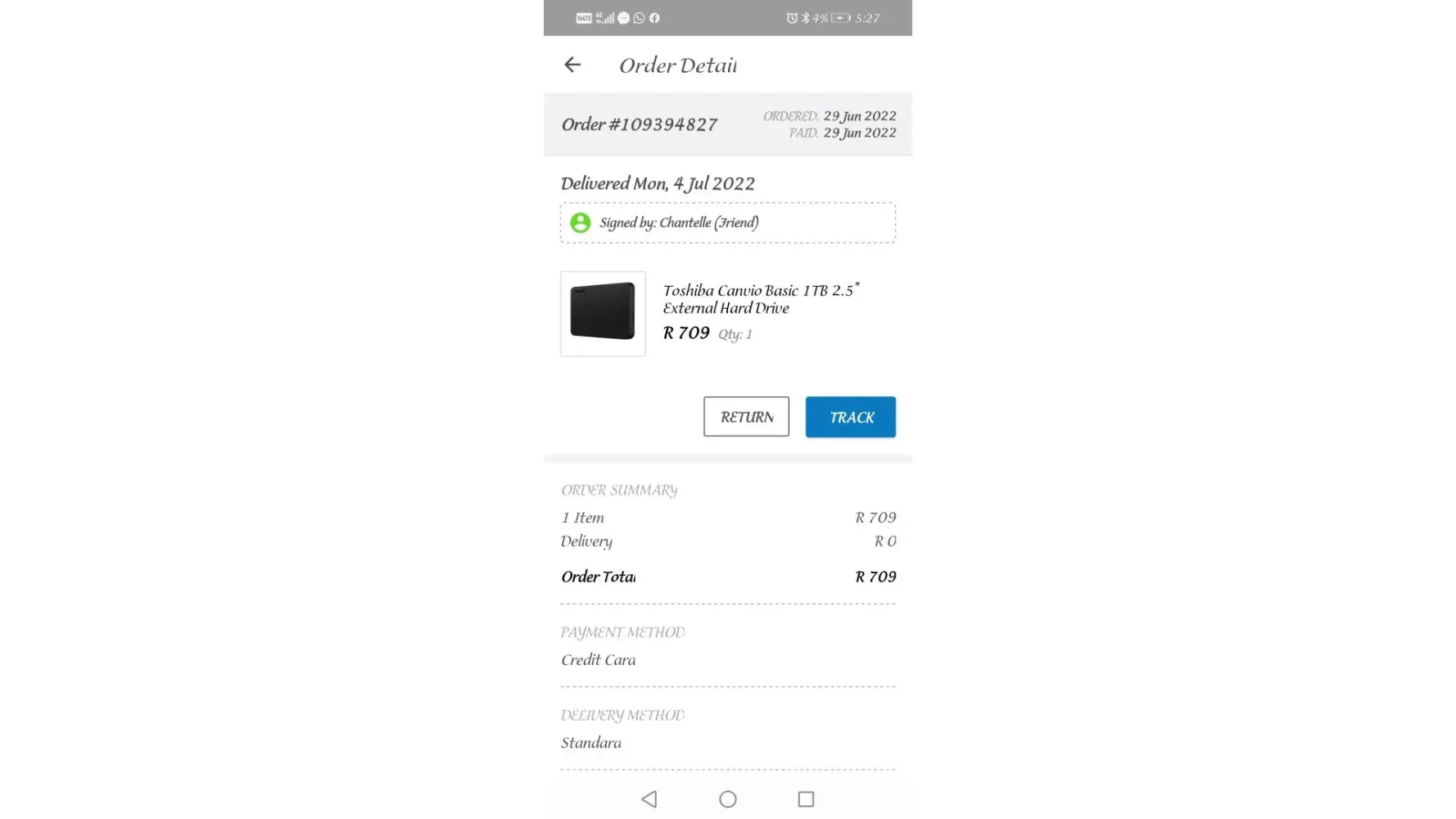 Good day this is miss van Zyl I ordered a Hard drive didn't get it the thing said it was signed by a chantelle do not know this person and now I lost 709 rand I want either my money back or the driver needs to get it back