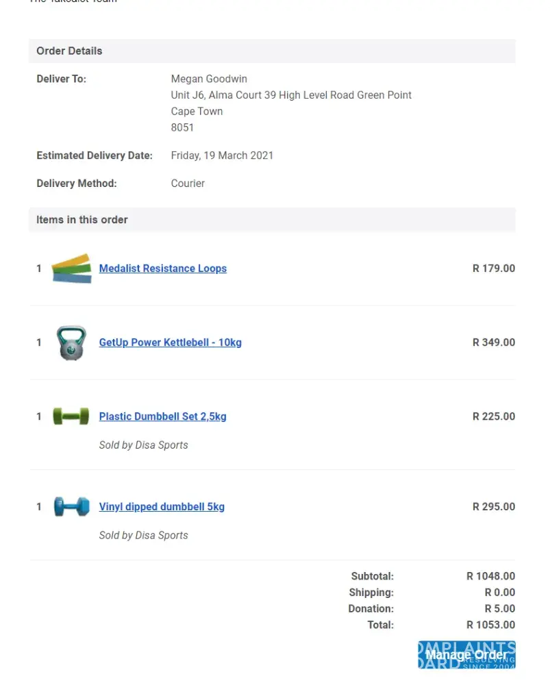 My takealot order was delivered this morning, however one of the items was not delivered which I had ordered and paid for. Order number [protected]