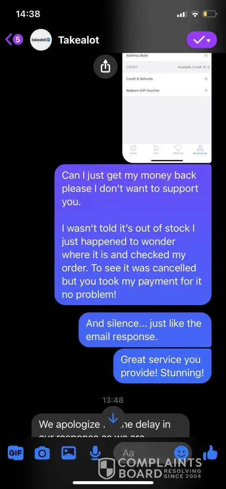 takealot reply #3. Apr 9, 2021, 13:39.. I will be escalating this to the relevant department for this matter can be investigated accordingly, as soon as we have an update we will be in contact with you directly