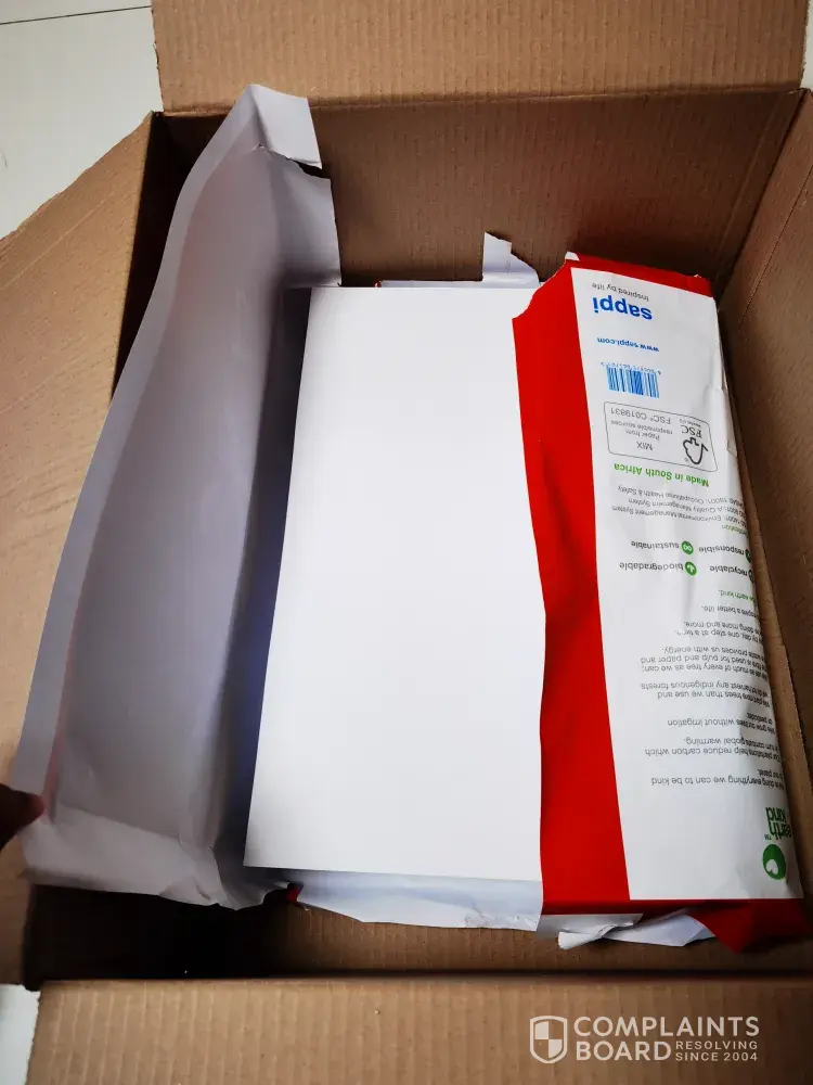 After the long struggle for the exchange waiting a week after the delivery date and with the agreement with Takealot to phone an hour before the delivery and that didn’t happen When I placed it back in the original package used green cable ties to seal it, I then placed it then in plastic bubble wrap and inside the original box as per their instruction as per Takealot refund exchange policy with the reference number on the box showed the courier the device and placed the device inside the box and handed the box open to the courier that he can inspect the package and to seal the box (for them not to tell me i sended an empty box with a brick)