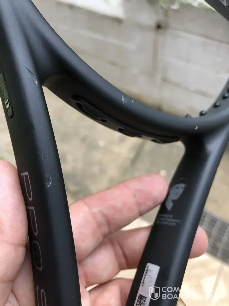 After taking the product out of its flimsy packaging a I straight away noticed the tennis racquet had several scratches and on closer inspection there were chips out of the racquet.