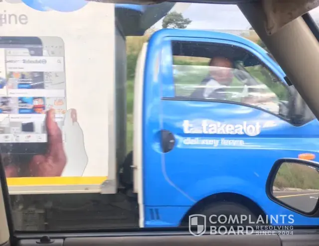 Last Thursday I was travelling on the N3 South in the far left hand lane before the Linksfield Road exit, where a Takealot vehicle suddenly appeared right at my rear with literally 1 metre space between the Takealot vehicle and my own. The driver then proceeded to try and pass on the inside (yellow emergency lane) which is highly illegal and very dangerous. He then continued to drive right up against my vehicle until I found space to move into the next lane to my right. He then drove at a high speed past me where I pressed my vehicle's horn to indicate and express my anger over his poor form of driving, where he then put up his hand and gave a "waved me off" gesture.