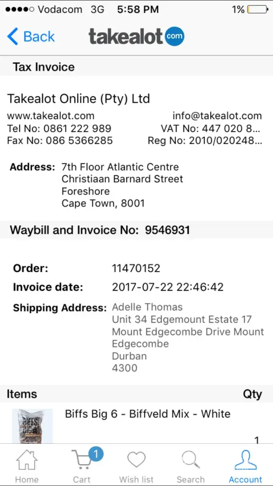 The reason I chose Takealot over another company was because their shipping time was faster than any other company. Moreover, I planned to collect it from the Cape Town warehouse in order to speed things up even more.
