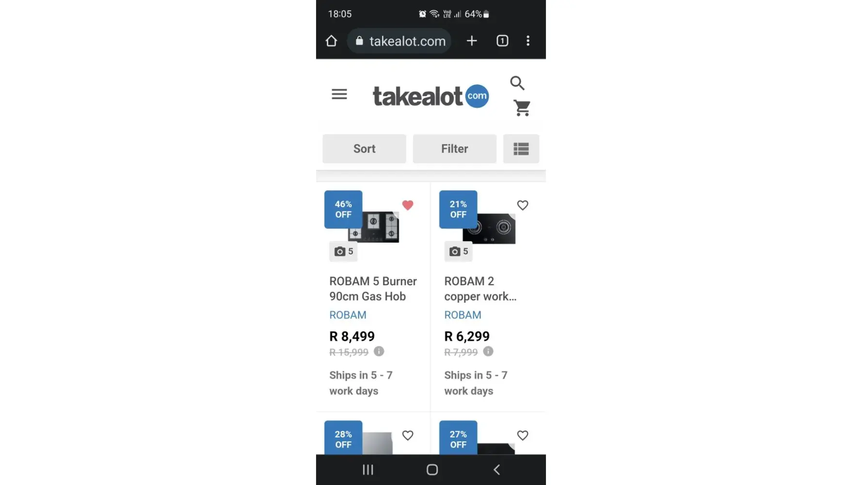When logging into takealot, exactly the same item is still showing available to order.