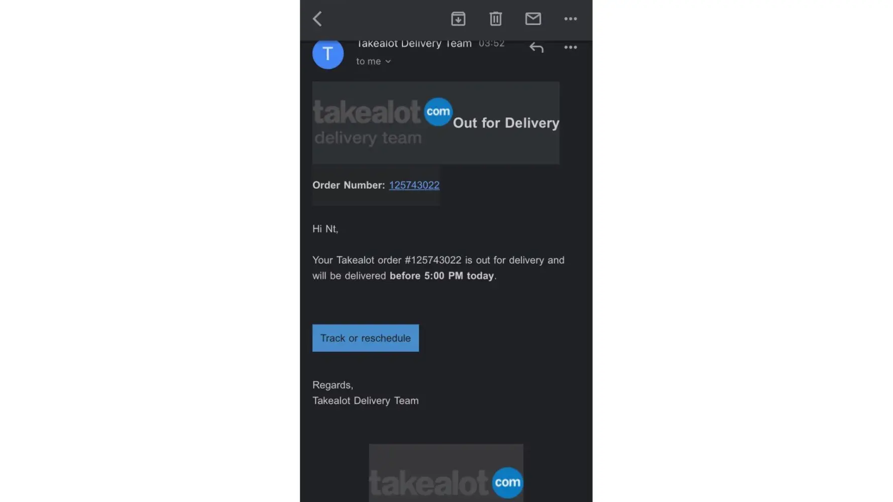 My Takealot order number is Order #[protected] and was said to be delivered today on the 27th of March 2023 at Gugulethu Cape Town, South Africa.