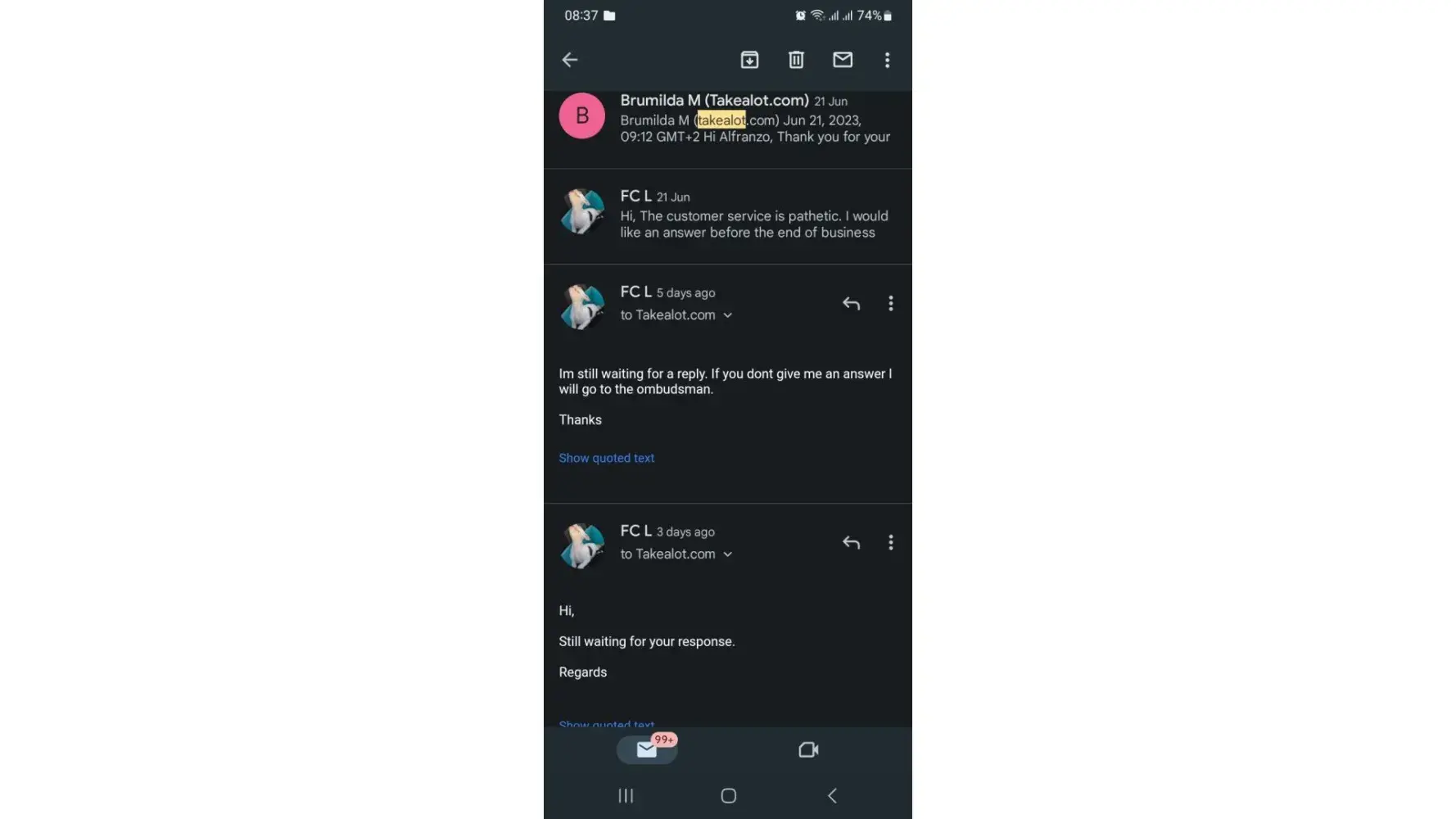 I'm very disappointed with takealot team because this is not a first time it happens, but at 1st I didn't mind, but now that its happening over & over its something that I cannot stand for.