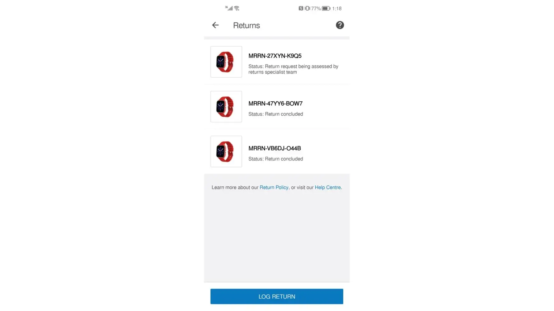 I have log return of my shoes it was 7th of April, then when I do follow up I found out that is listed as concluded at 13 April but I have not heard from anything from them.