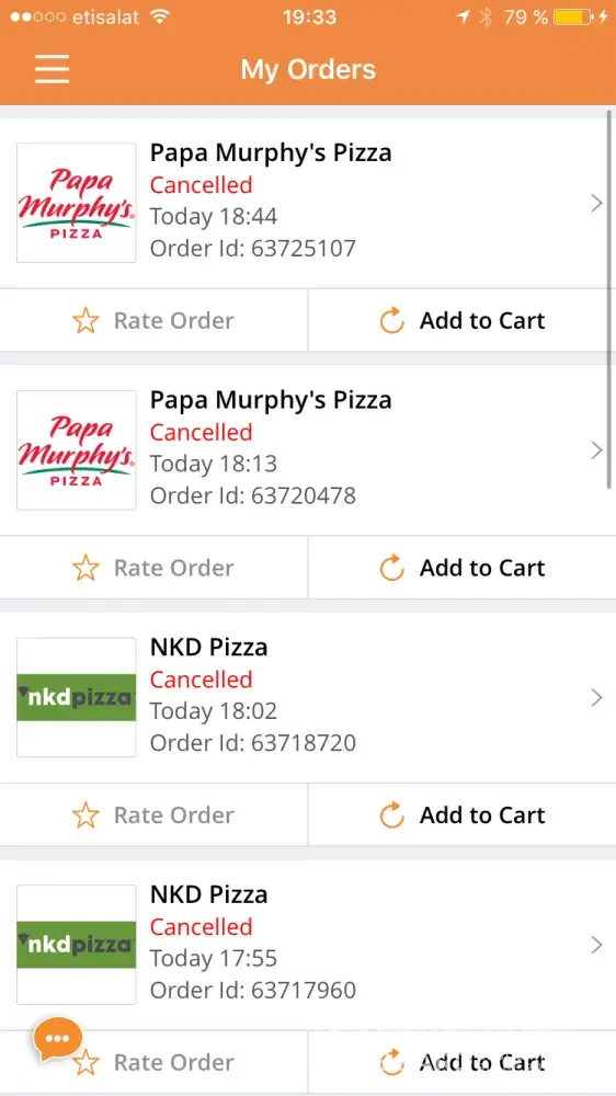 Talabat cancelled our order first time saying some sorr of item is not available! ( what item? We ordered pizza!) Egyptian guy feom customee "care" couldn't explain and asked us to place the order again.that took them more than 30 mins to give a call and tell me that ordee is cancelled! FYI delivery time promised is 4mins ( as per the website!)