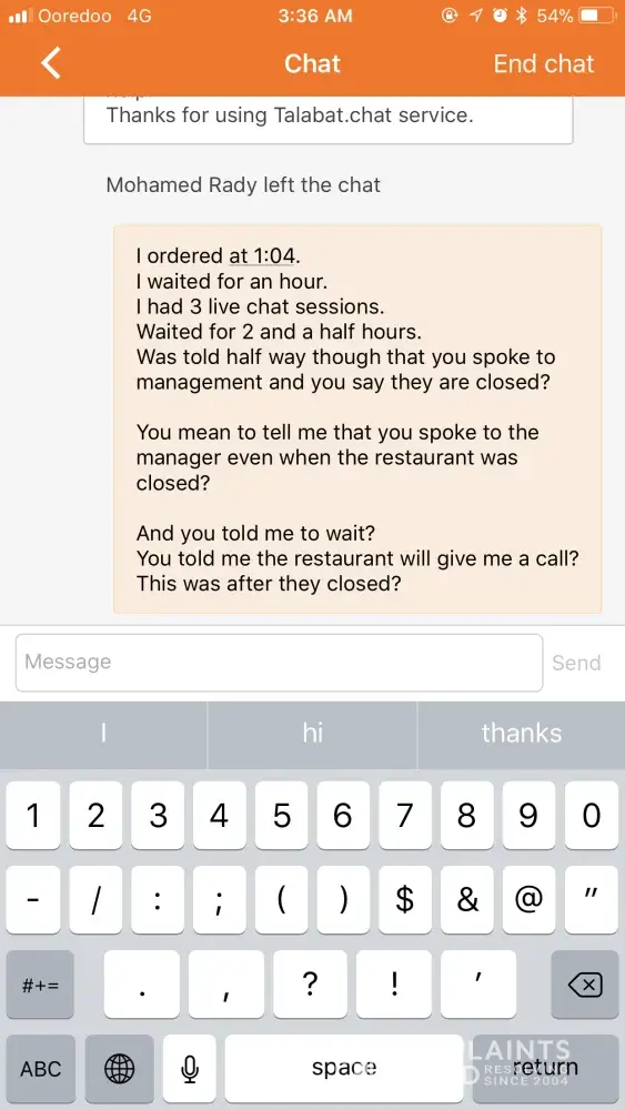 I said that was impossible as I had been waiting for two and a half hours beside my phone, using it, messaging the live chat agents.