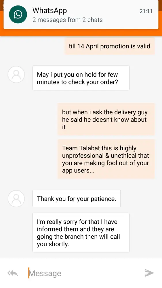 fake promotion by talabat.com