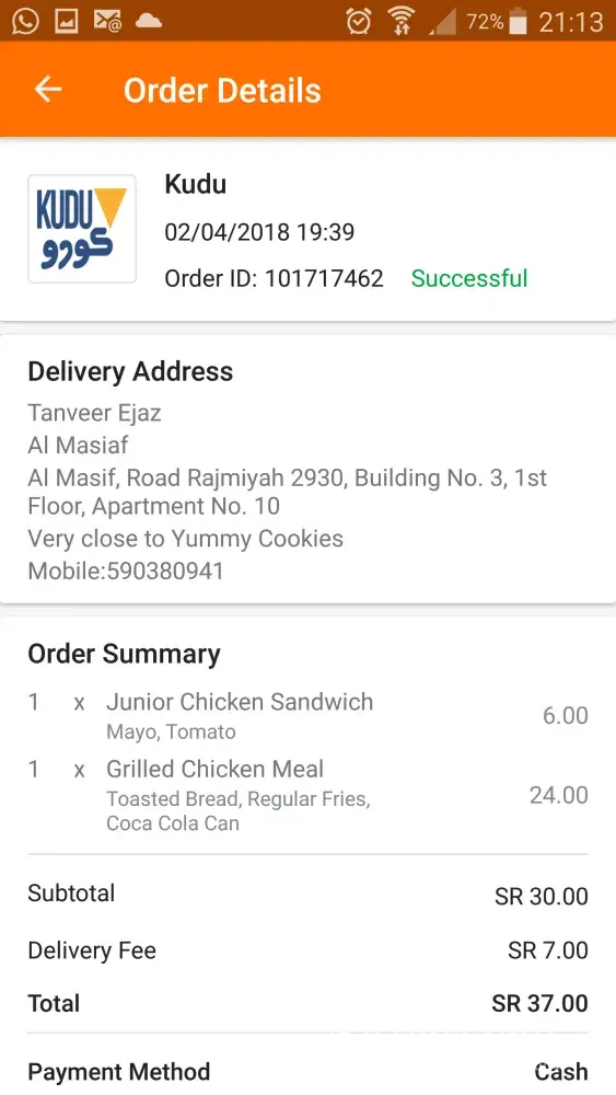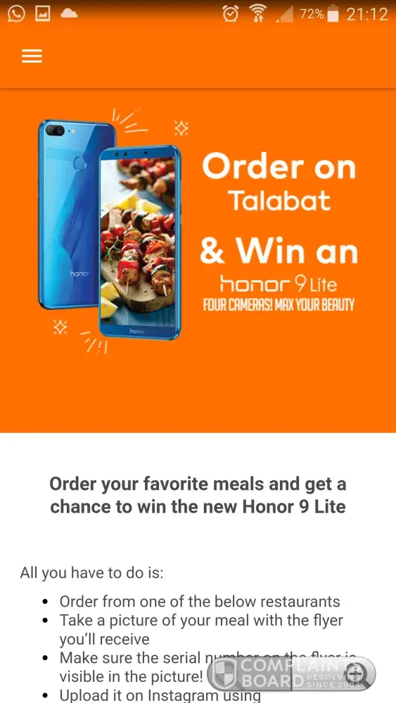 I ordered a meal from KUDO using Talabat app. KUDO is one of the participating restaurant in Talabat's current promotion "WIN AN HONOR 9 Lite". In order to participate, customer has to make an order, then take the picture of the meal with the flyer (to be provided by the participating restaurant with meal delivery) and put it on Instagram.