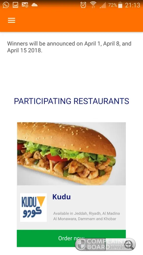 talabat has the worst customer service agents, they dont respond well to complaints. I had 3 incidents in 1 week that happened with different restaurants which my colleagues and I had ordered through talabat, there is no such thing as following up with an order, talabat doesnt communicate with the restaurant. the first incident was that after i complained that its been more than 1 hour and a half since I ordered then only talabat checked with the restaurant and found out that the restaurant did not even recieve the order, which led to them bringing it after 3 hours. the second incident was with pizza hut where again it took around 3 hours and several phone calls to talabat which also we found out that the restaurant had received the order from talabat after 3 hours. the last incident was today with a mandi restaurant where the payment was done online with a credit card and after over an hour i contacted talabat again to ask about my order and they said that restaurant cant deliver it anytime soon, I then called the restaurant myself to make sure and they told me clearly that when they received the order from talabat they contacted them directly and told them that they wont be able to deliver but unfortunately because of talabat's poor customer service they did not inform me until i had to call them and ask. I made sure that I will put a very bad review everywhere about talabat and will make sure to spread this story.