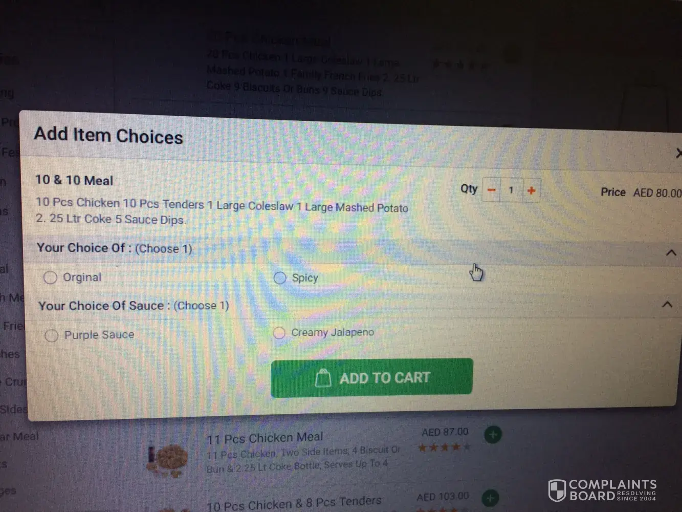I have 10x10 meal (Texas) - QTY 03, which includes the below as per your site. 10 pcs chicken 10 pcs tenders 1 large coleslaw 1 large mashed potato 2. 25 ltr coke 5 sauce dips.