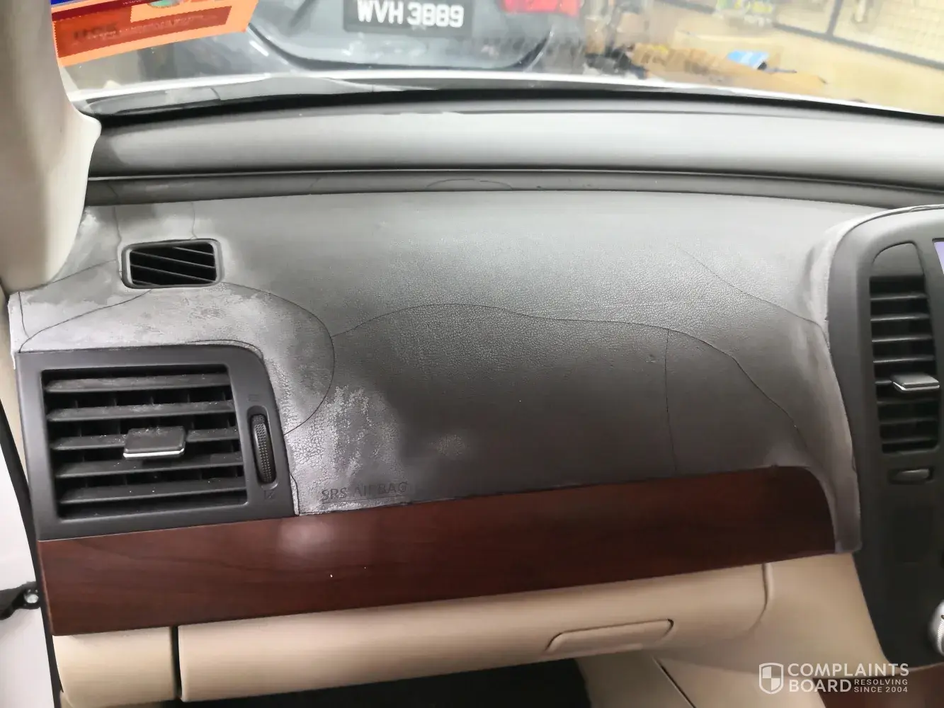 I own a Nissan Teana XV250V6 registered in 2014. Number plate KDR 2772. The soft touch dashboard has begun to become oily, sticky and there are numerous coin-sized bumps forming on the dashboard. I complained to ECTM Prai Penang and was told to change to a new one costing RM3941.00. I'm not happy to replace a new one because this same problem will happen again after a while. I feel that this dashboard is of inferior quality and material.