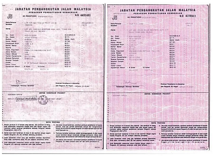 vi) 1 copy of proof owning 2 nissan vehicles:- MAH8051 and BBX8051