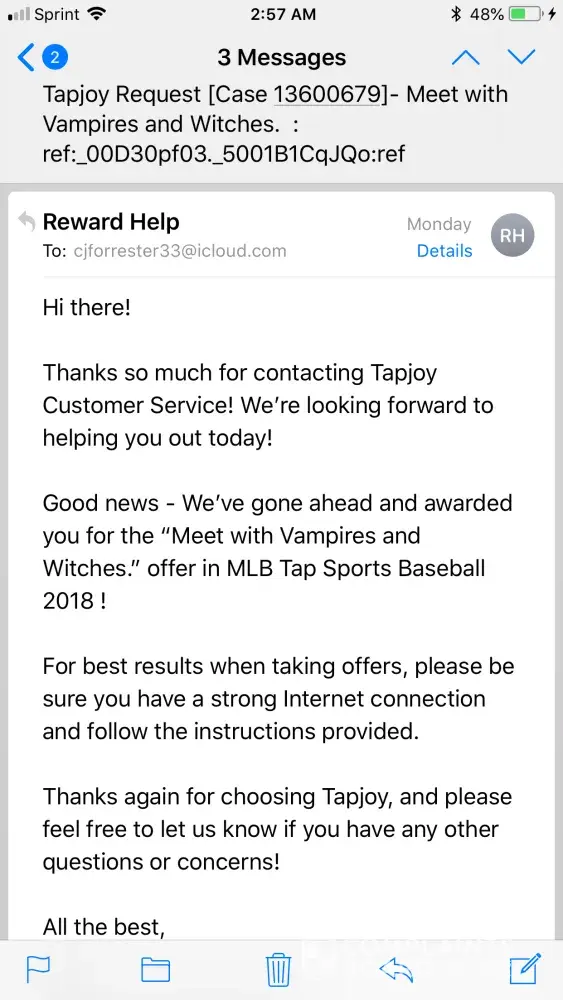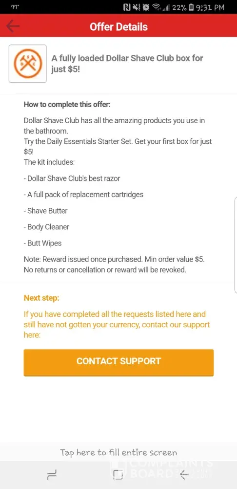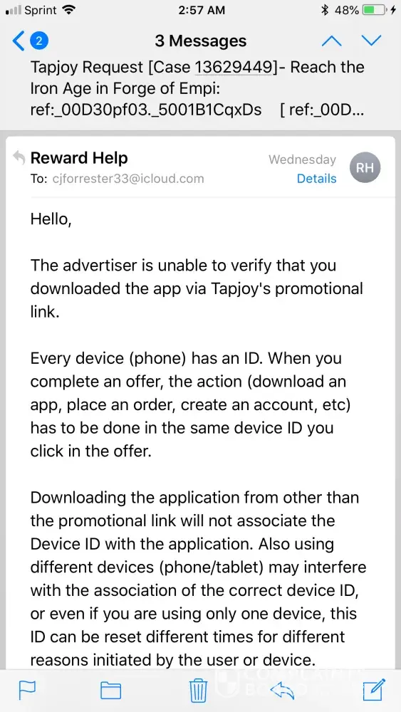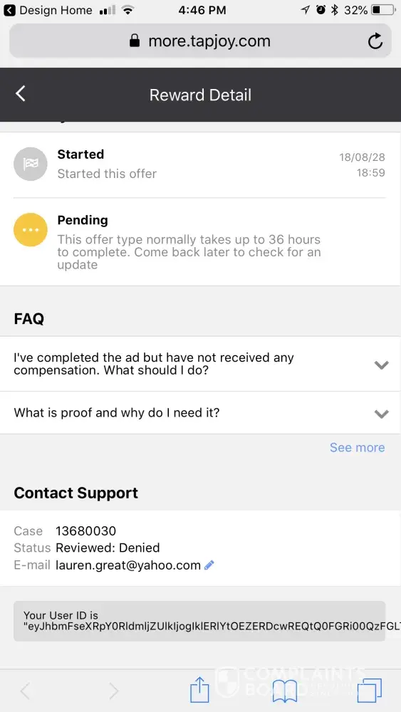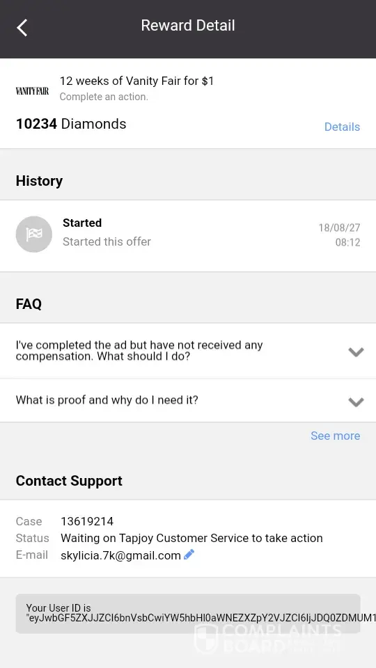 I completed an offer. The tapjoy app said I didn't. I have the email to prove it. My email is [protected]@gmail.com I have tried to contact support through the app but it is conveniently down right now and the reward will probably be removed from the app before it's up. I took screen shots of it though. I have tried everything Tapjoy sites tell me to do but nothing has worked. I also see that there are a bunch of complaints about this site on social media and the internet.