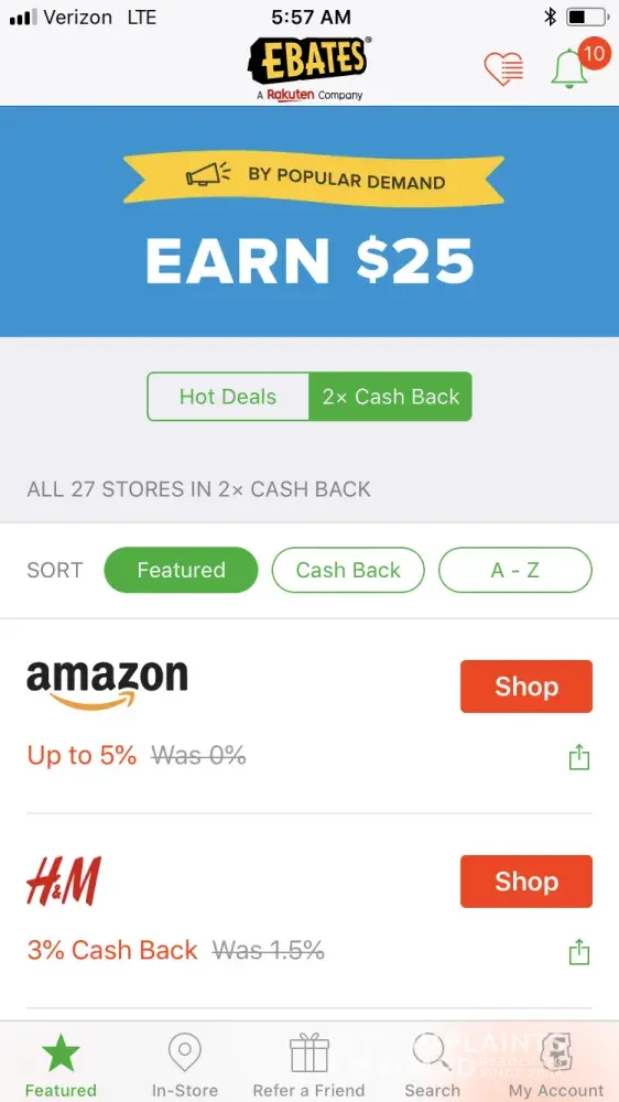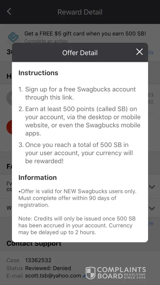 not receiving promised reward for completed offer