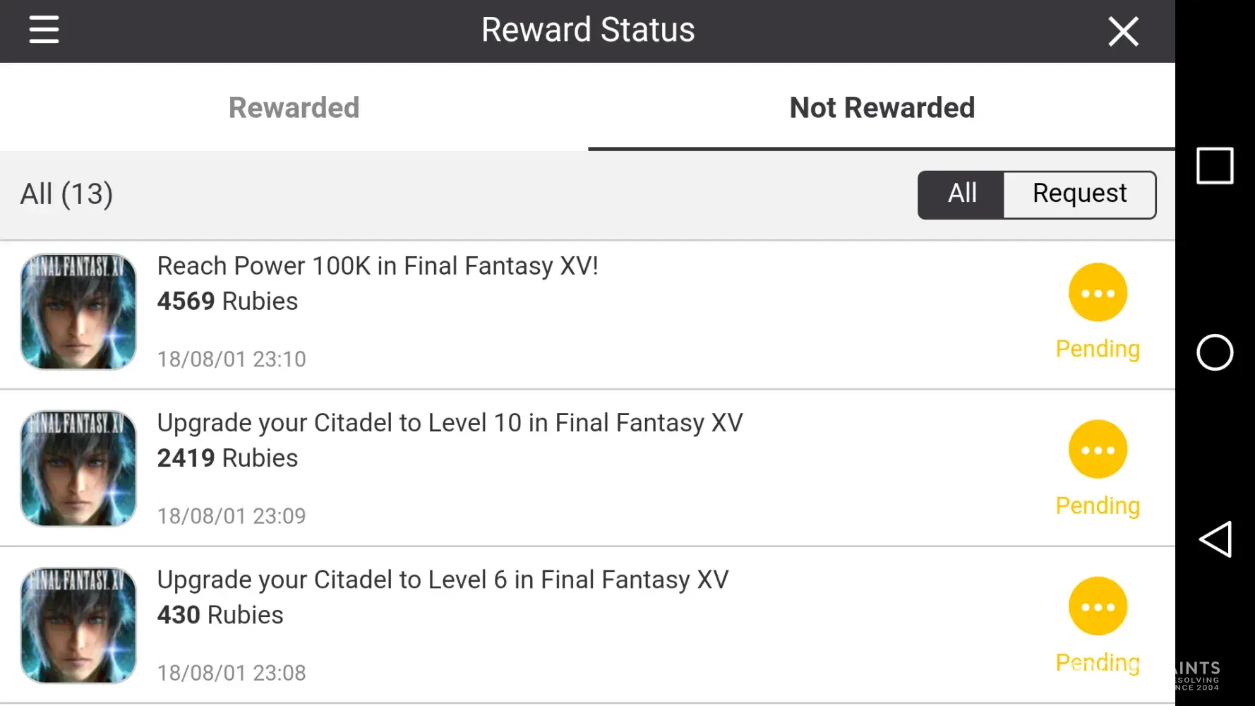 I've completed the Final Fantasy 15 offers for 10000 power level Citadel level 6 and Citadel level 10 I filed a complaint with the Tapjoy website and also on their customer service phone number and now they're telling me that the app was installed for a different device or different game but they refused to tell me which game that it was for they owe me over 3, 000 rubies and they refuse to pay it even though I provided proof more pictures of my game and my power levels and my soda there levels also the offers for the Shadow Fight 3 game and the Tapjoy Reward Center.