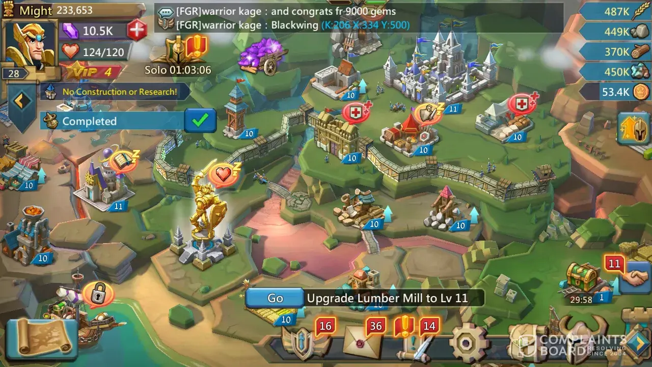When I was playing growtopia I found a offer 70000+gems if u reach castle 11 in lords mobile I have spent 4-5 days playing the game but still I have not receive any rewards plz reply back