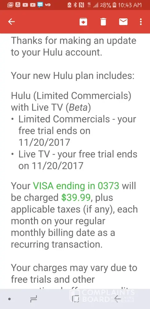 I completed the Hulu Live TV request/sign in and didn't receive my coins. I have the confirmation email from Hulu if needed. I also tried to submit the request through The Walking Dead Tapjoy but everytime I tried to submit it I could not select the Hulu TV offer. It seemed to be stuck on a Clash of Clans offer. I am attaching the screenshot of my receipt of my Hulu TV email. My email address is [protected]@gmail.com