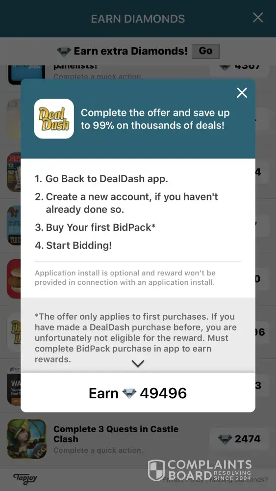 TapJoy your lack of paying rewards in the form of diamonds