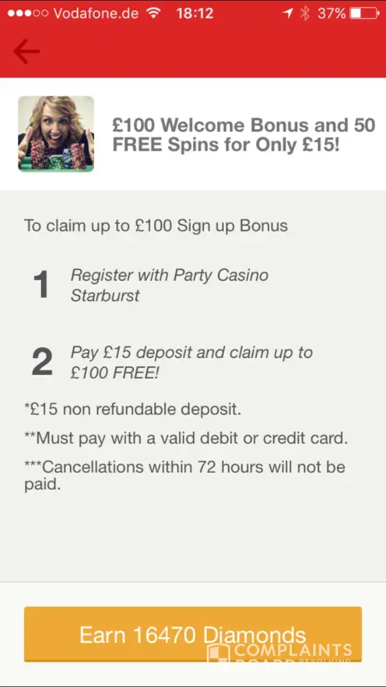 In a Tapjoy offer of Party Casino I had to deposit 15£ in order to receive 16.470 diamond in Covet Fashion Game.