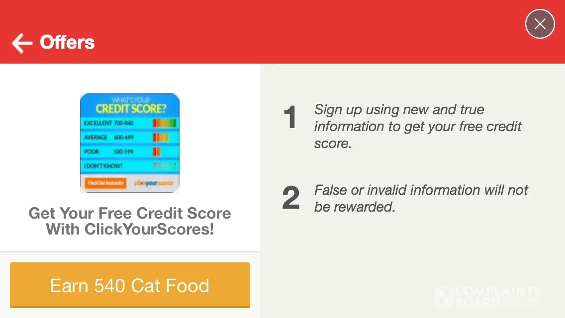 I was trying to earn some currency for an app and I saw this "free" credit score service. I thought I would give it a shot to learn about ten minutes later it may have been a scam AND I never got the in game currency (battle cats 540 cans).
