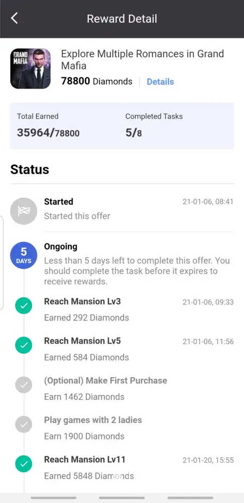 I did one offer where I needed to open 2 void shards within 10 days in game called Raid Shadow Legends.