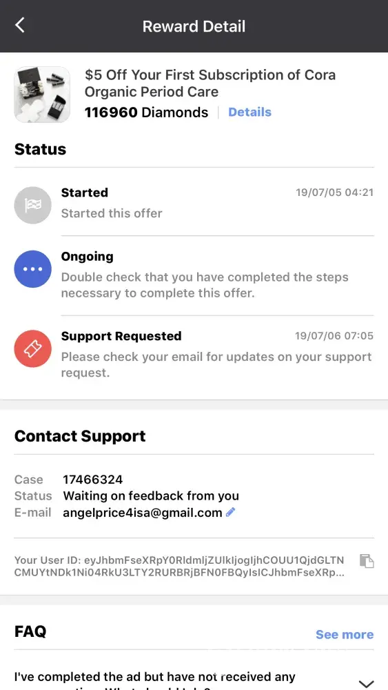 I have completed the request of tapjoy but the reward stated fail. I requested ticket to this issue and my case all marked as spam and resolved. This is ridiculous, your system has issue and mark all my request as spam? This become a way to prevent payout?