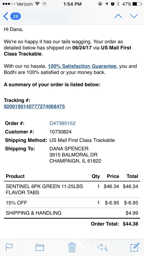 The complaint has been investigated and resolved to the customer’s satisfaction.