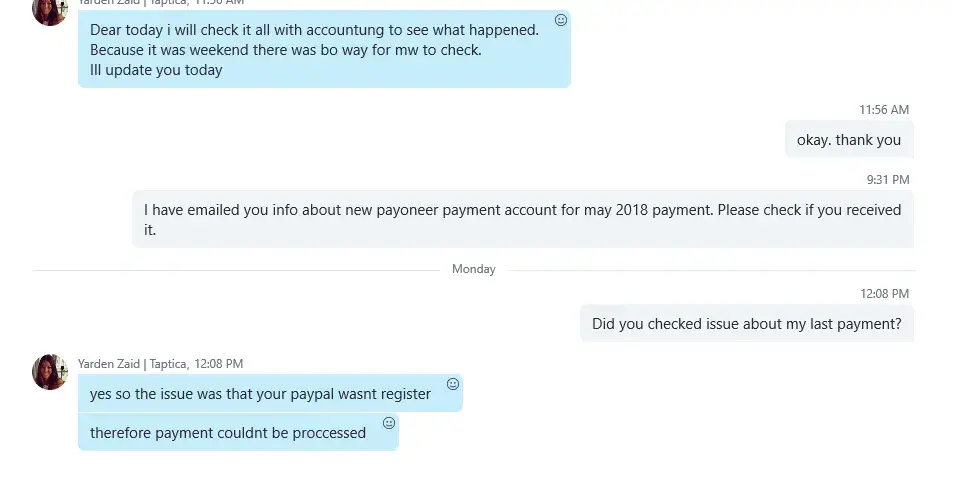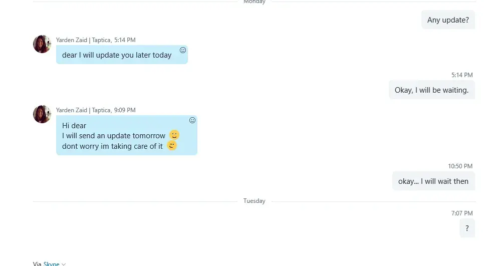 This was my experience with them and I have really wasted a lot of my time and efforts with them. I have attached some screenshots of our chats in skype.