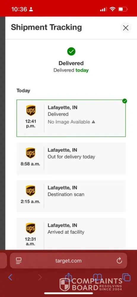 I then called Target. Well the guy who I got on the call kept quoting me they can't indicate how the delivery is done and they did nothing wrong. He continued to say there was nothing they could do. He then said we can't ever say something will take 5 business days to get there. All he kept doing is offering up the PC excuses as to why Target was not at fault for any of this. I interrupted and said BUT it has been a month! A MONTH! AND Target DID say it would be 3 to 5 business days, was expediting the shipment as they knew my situation and I was extremely pressed for time. AND they never asked if I could stay home to sign for it which would make it faster. Target is pointing the finger at their delivery carrier and the delivery carrier is pointing the finger at Target.