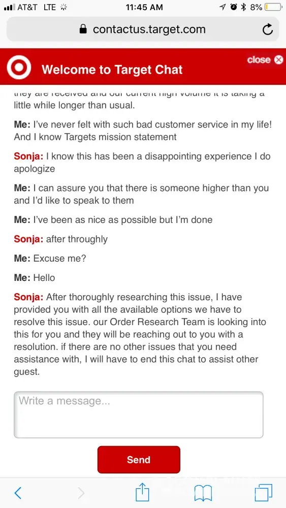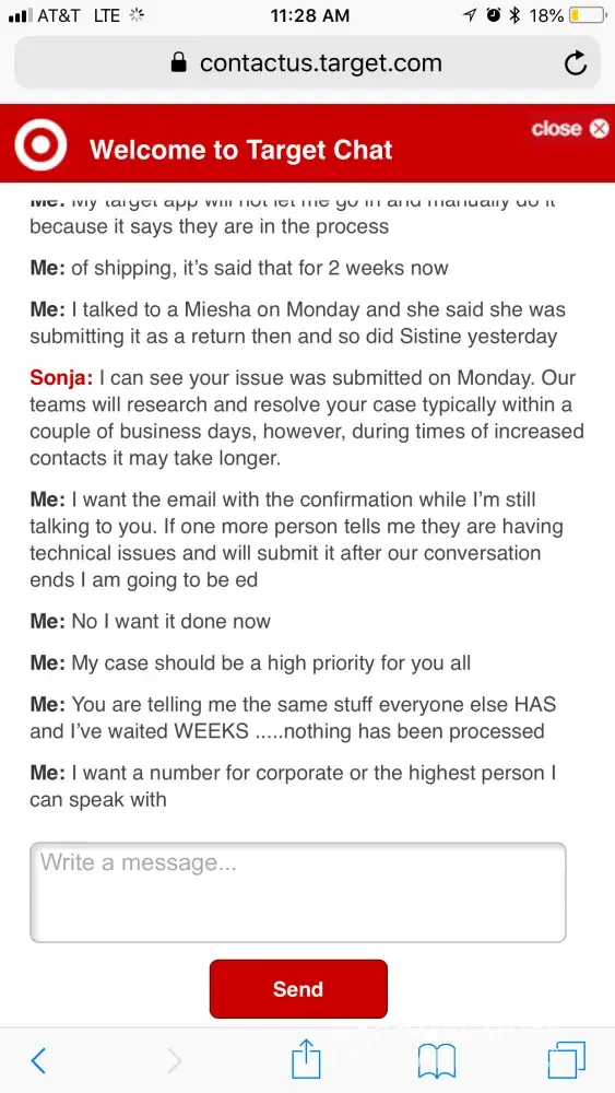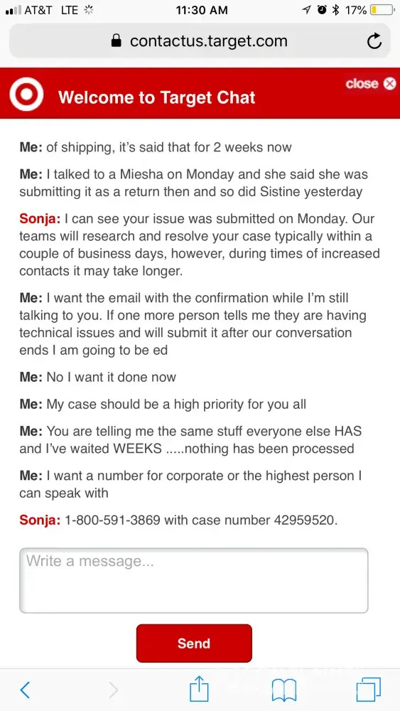 I would like to know what target would like to do for my frustrations? If you would like to reference a case number the last one I was given is #[protected]