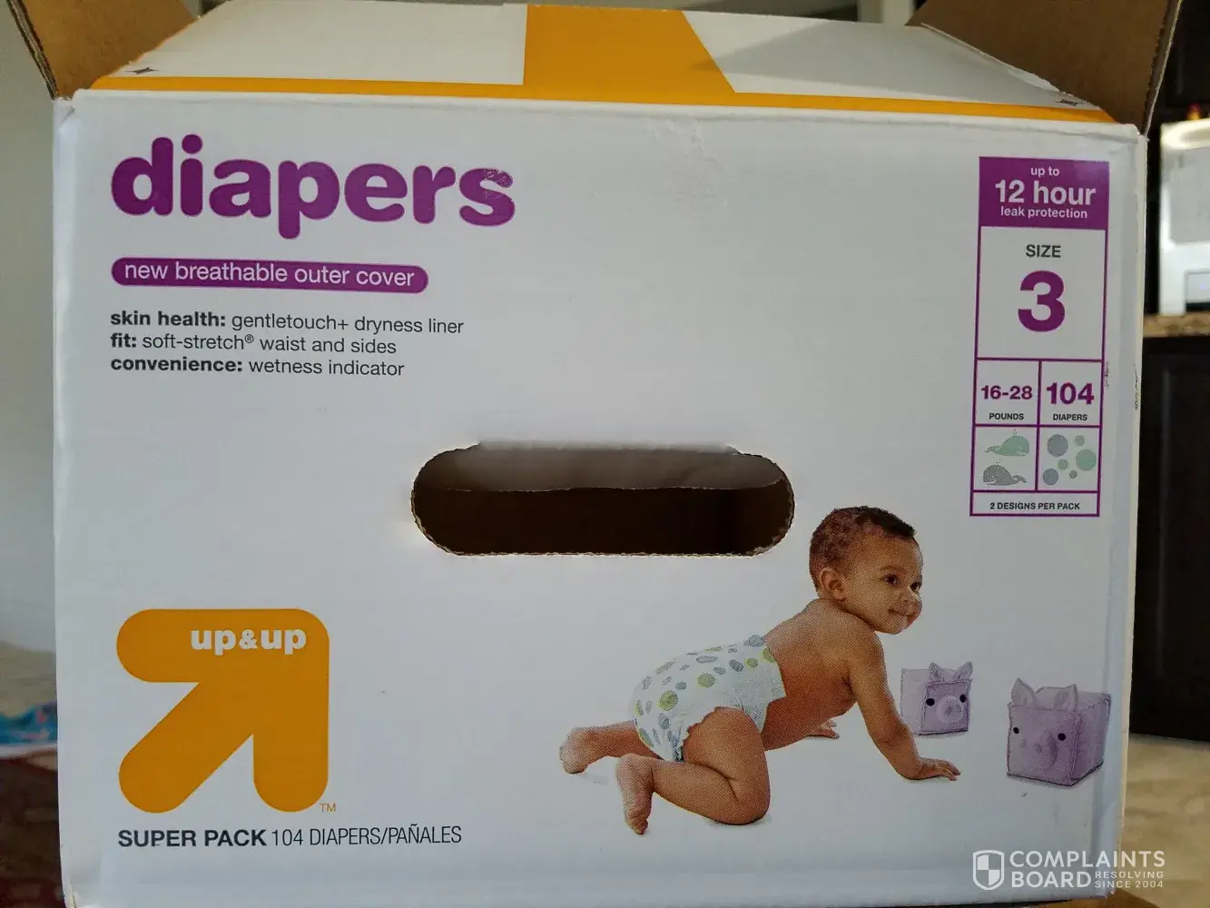 I purchased it target brand diapers size 3 104. 12 hour leak protection as it is labeled. It is not our first time I purchase this box many times I think this is a defective one.