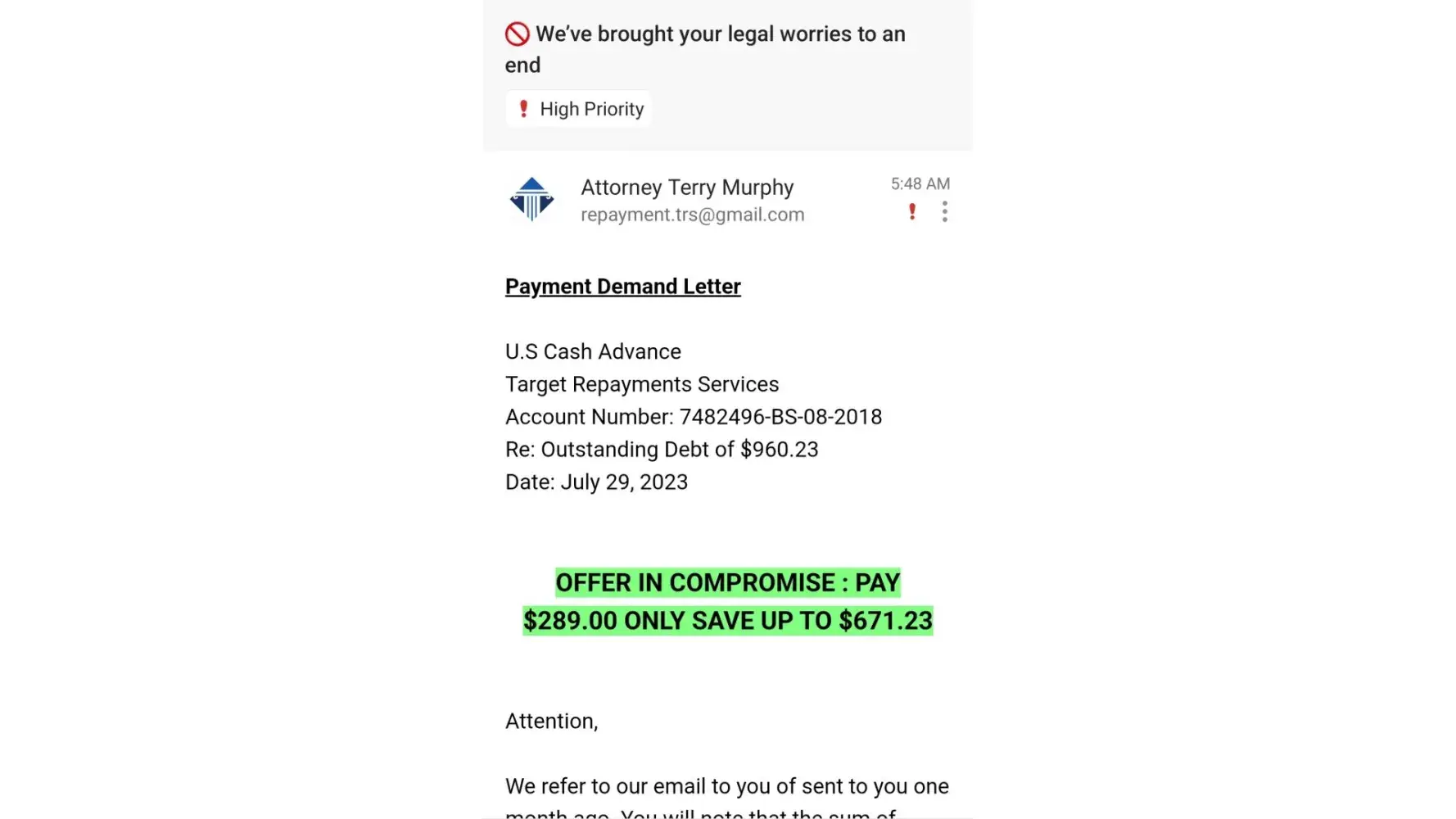 Crazy thing is I actually do have outstanding debts due to cash advance institutions. They almost got me but I'm happy I googled it before settling with them. A